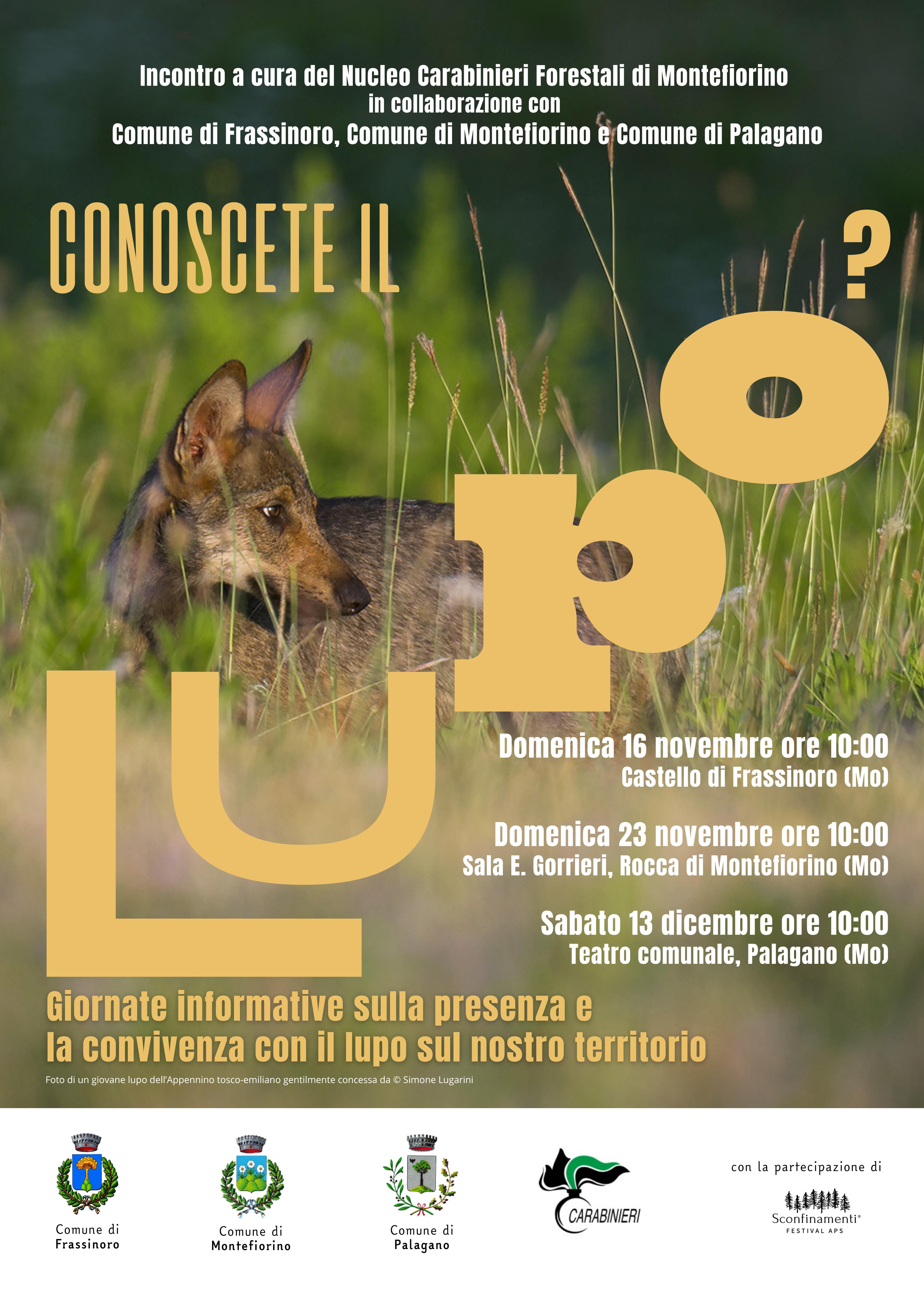 Domenica 16 novembre, ore 10:00, presso il Castello di Frasisnoro (MO) si svolgerà l'incontroi nformativo sulla presenza e sulla ocnvivenza con il lupo sul nostro territorio.